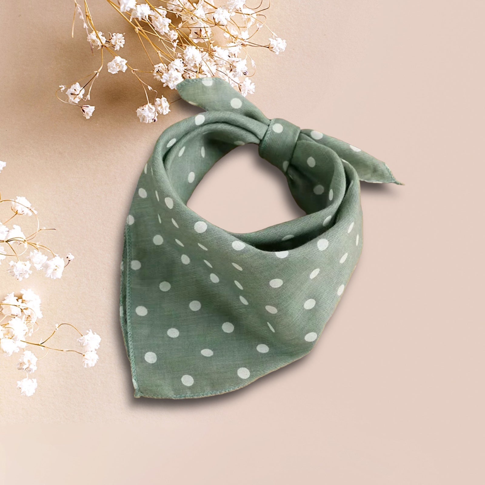 Elegant og praktisk hundebandana i silke Stilfuldt design med prikker Fås i flere farver Blød og behagelig silke Meget fin silkebandana med et stilfuldt design. Den er tilgængelig i farverne beige, grøn, blå og rosa med prikker. Denne bandana er ideel til